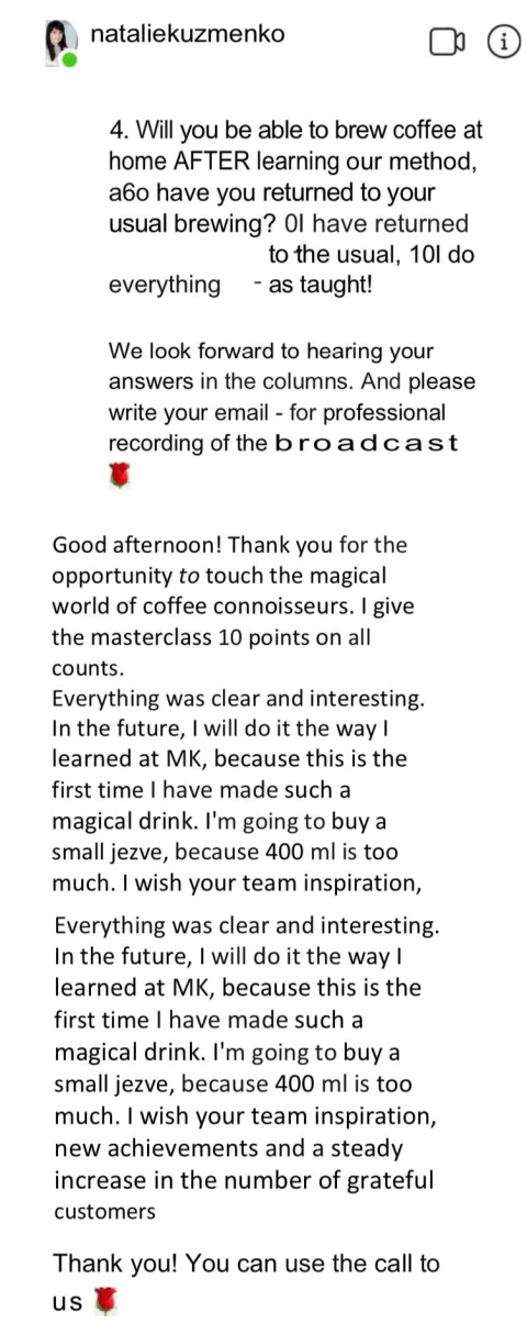 4. We meet online, I answer your questions and share my experience on how to improve your results.